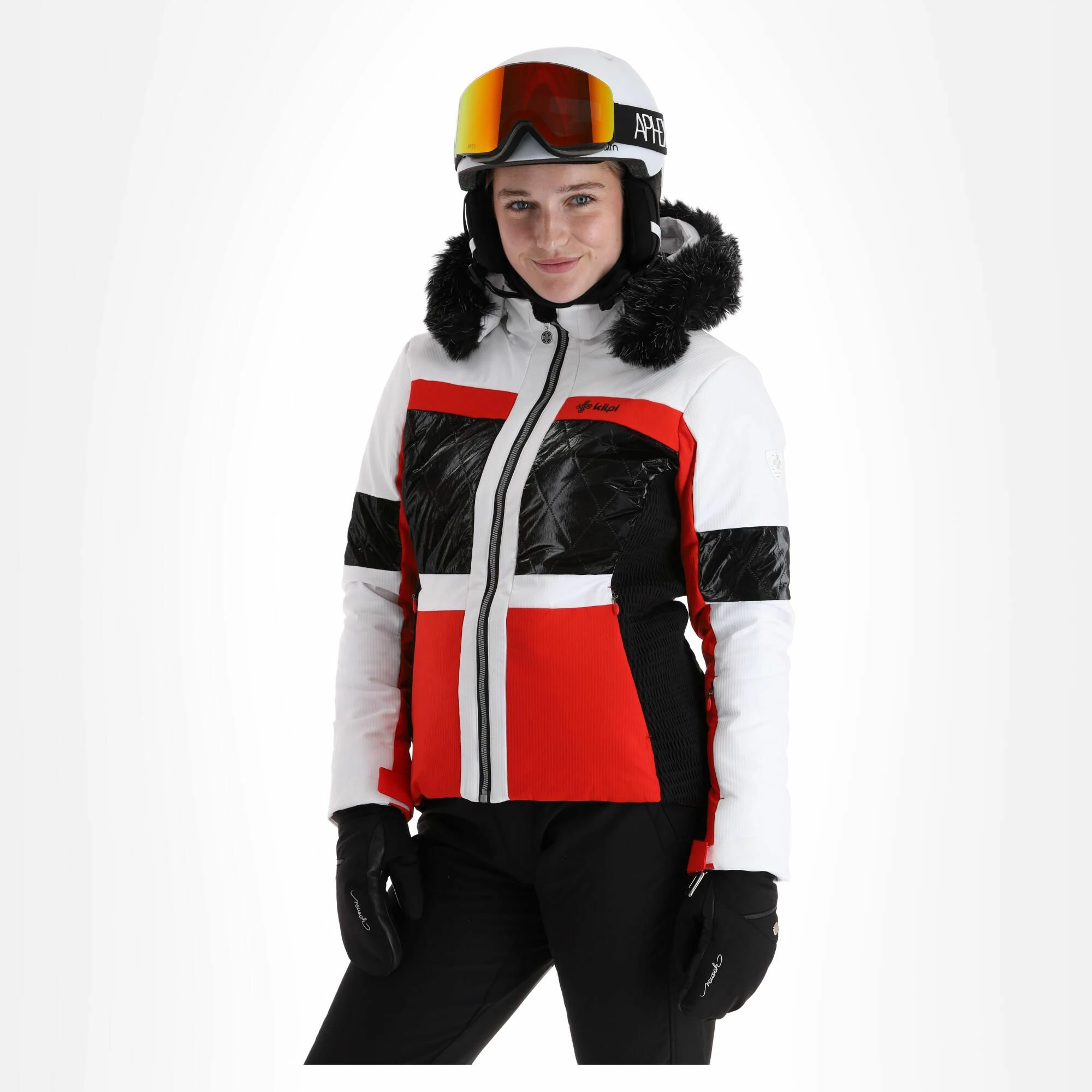 Met deze dames ski-jas van Kilpi in een tweekleurig strak design val je op op de piste of in de après-ski bar. De elastische voering, mouwboorden en anti-sneeuw kraag bieden geweldige bescherming tegen de kou en sneeuw en houden je comfortabel. De jas heeft twee zakken met rits, interne zakken met een brillenpoetsdoekje en een mouwzak voor je skipas. De zoom van de capuchon is gevoerd met imitatiebont en de capuchon zelf is afneembaar.