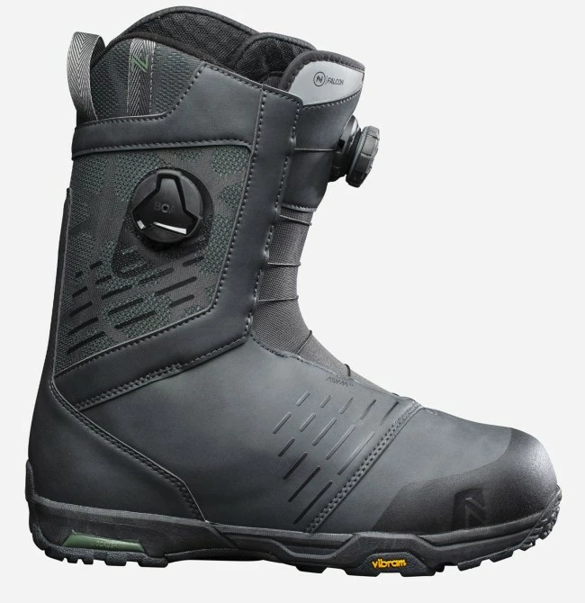 The Falcon is a team favourite that blends cutting edge boot tech with a mid-stiff flex for premium all-mountain performance.Built around our FlowFit™ last, it’s designed to offer a seamless connection to both Nidecker two-strap and Flow speed-entry bindings. The asymmetrical construction perfectly matches the shape of each foot and works alongside the latest Boa H4 Coiler™ for rapid, pain-free adjustment of both the lower and upper boot. Our most advanced Gold Level Heat Moldable Liner will adapt to your foot over time or can be customized instantly in store. It features a Ripper Lacing Harness and Power Strap for secure hold whether you’re burning wax on piste or sending it in the backcountry. The Falcon also benefits from a top-of-the-line Vibram outsole that’s optimized for grip in icy terrain, with OC-Kush™ cushioning at the heel and forefoot. Experienced riders won’t find a more versatile or comfortable boot.