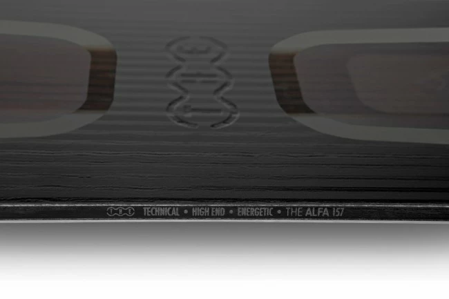 – Opzij kijken: Cam Rock. THE Alfa heeft camber onder de bindingen en plat ertussenin voor stabiliteit en pop, zonder te agressief te zijn. THE Alfa heeft ook rocker in de nose en tail om makkelijk bochten in te zetten én uit te komen. Deze golvende, gebogen vorm geeft THE Alfa zijn veelzijdigheid. Hij is niet gericht op een specifiek terrein, maar blinkt overal in uit.